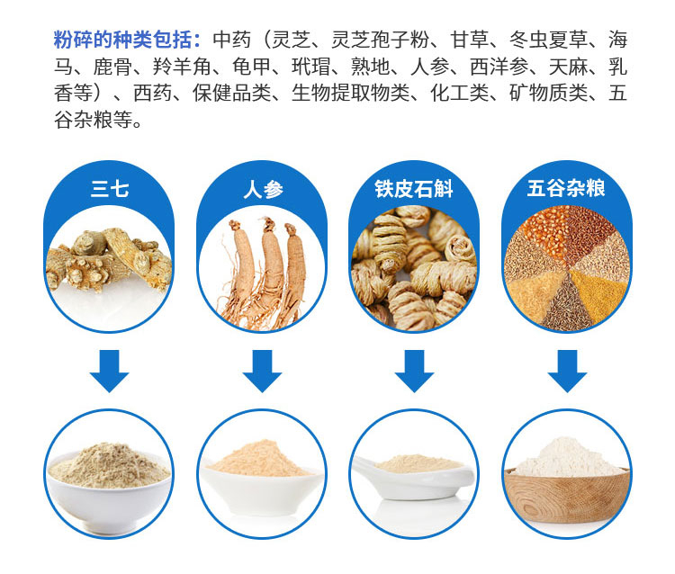 4.對(duì)花粉及其它孢子植物等要求打破細(xì)胞壁的物料,其破壁率高于95%。適于中心粒徑為150目-2000目(5pm)的粉碎要求。有些物料使用特殊工藝時(shí),可達(dá)0.1pm。同時(shí)適應(yīng)干式和濕式粉碎。濕式粉碎時(shí)可加入水、酒精或其他液體。